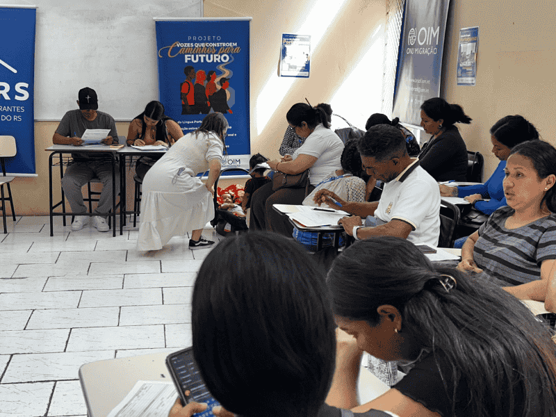 A turma do curso de Língua Portuguesa para migrantes do projeto Vozes que Constroem Caminhos para o Futuro realiza sua formatura neste sábado, 6, às 9h, na Casa de Cultura Lufredina Araújo Gaya, em Esteio. O curso buscou apoiar a integração social, cultural e profissional dos participantes por meio de uma aprendizagem humanizada da língua portuguesa. Esta é uma iniciativa da Casa dos Imigrantes e Refugiados do RS (CIRRS), com apoio da Organização Internacional para as Migrações (OIM), em parceria com a Universidade La Salle e a Secretaria da Cultura de Esteio.